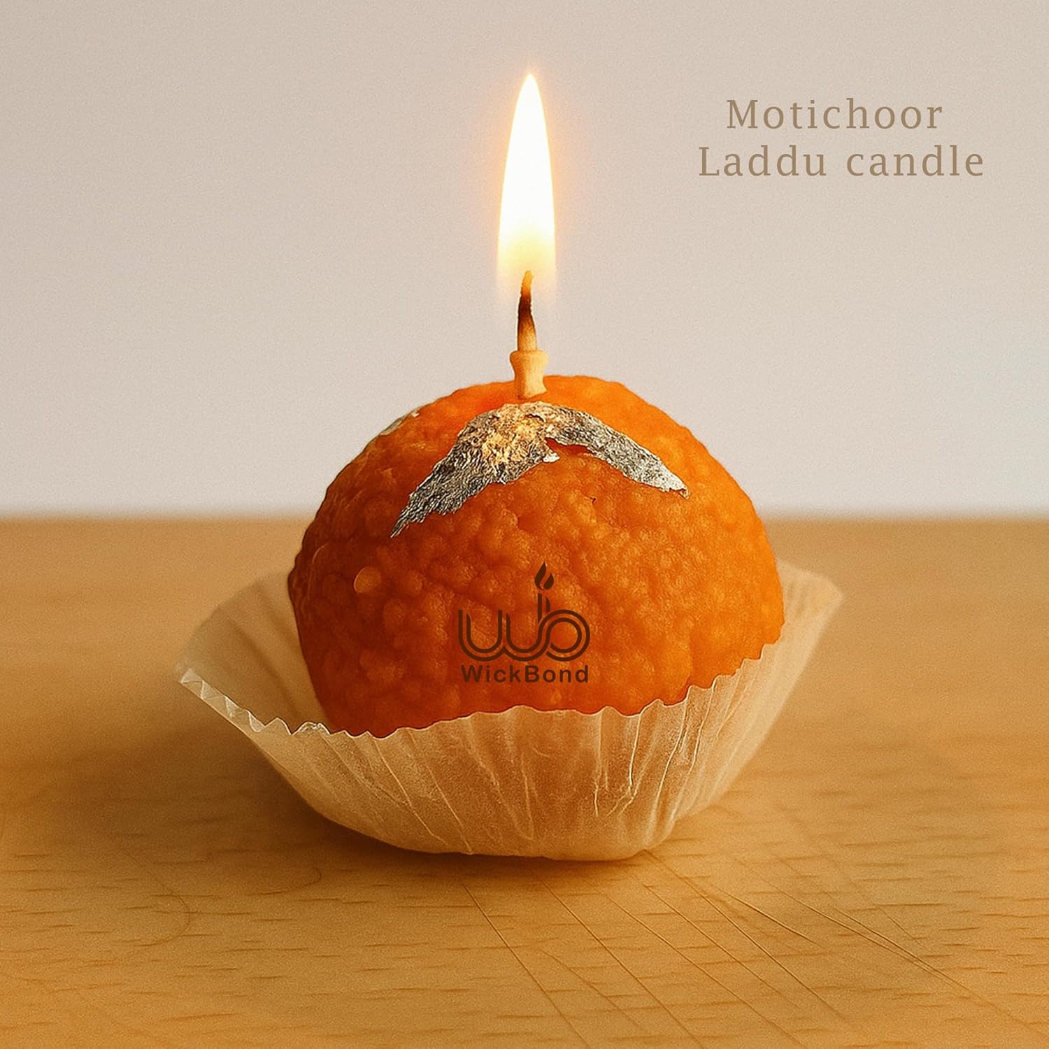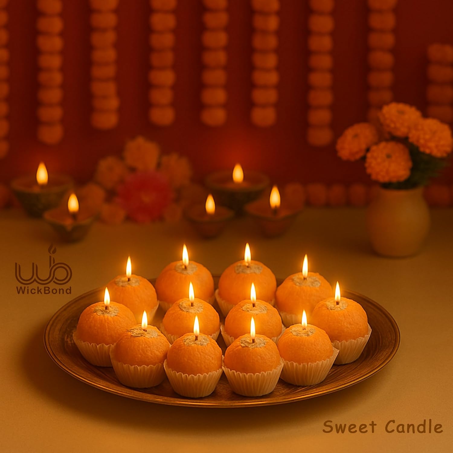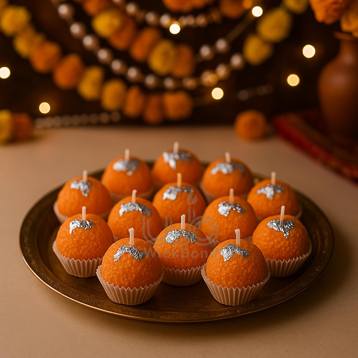 Samy Candle Cove Motichoor Ladoo Scented Candle | Handcrafted Soy Wax Sweet Aroma Candle for Diwali, Pooja, Gifting & Home Décor | Realistic Mithai Look | Set of 12