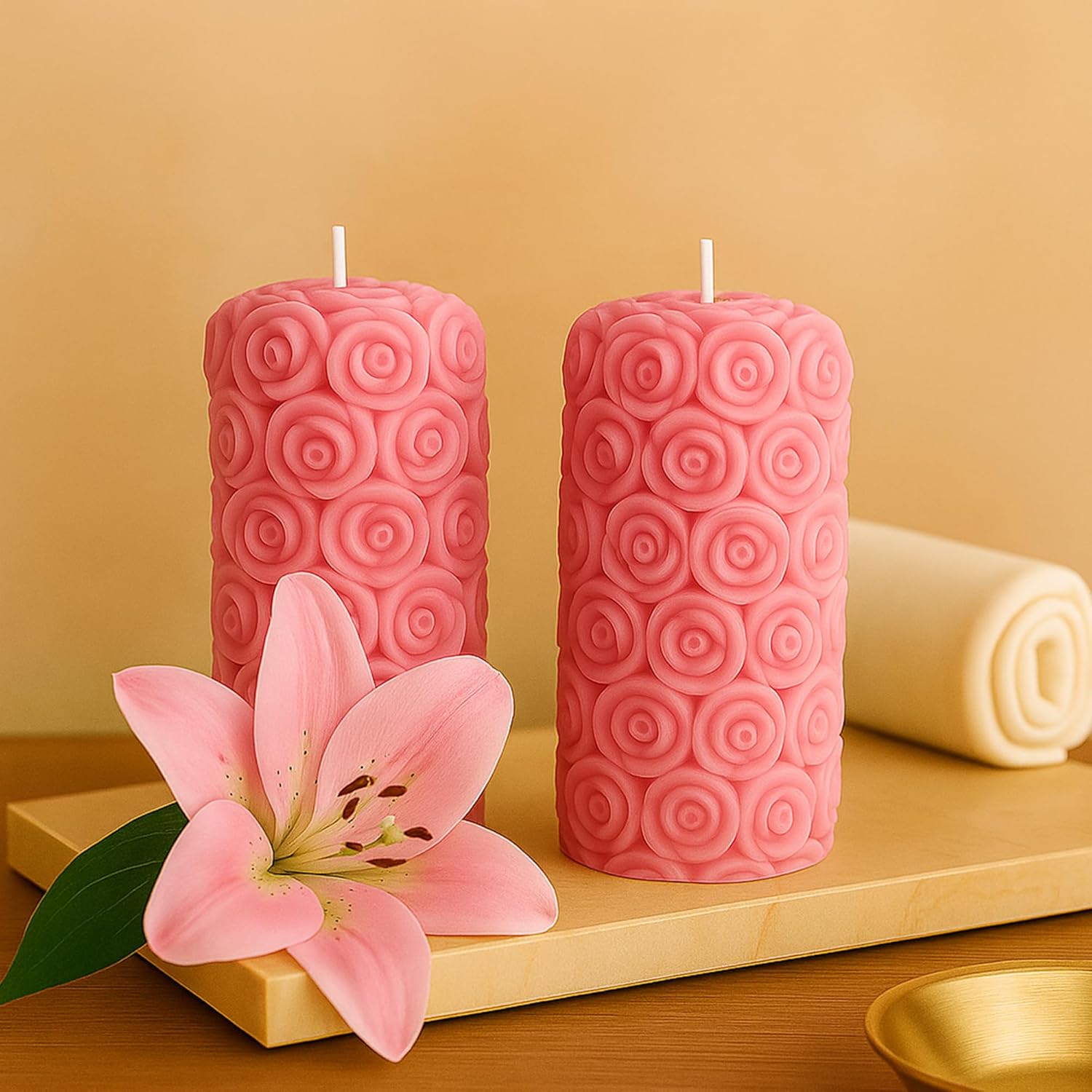 Samy Candle Cove Rose Pillar Scented Candles – Set of 2 Red Decorative Wax Candles for Home Décor & Gifting | Long-Lasting Floral Aroma | Romantic Ambience for Living Room & Bedroom (Lily)