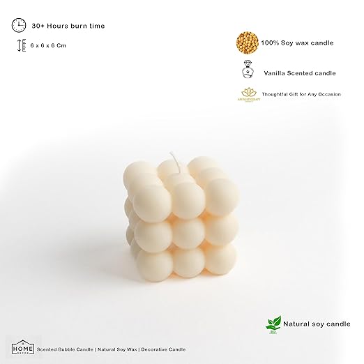 Samy Candle Cove Scented Bubble Candles, Set of 2 Handmade Soy Wax Cube Candles, Home Decor and Gifting (Vanilla)