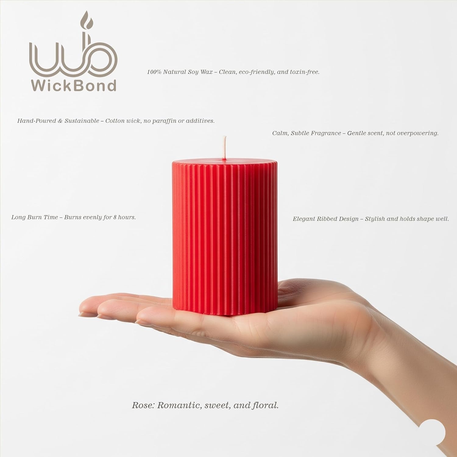 Samy Candle Cove Soy Wax Ribbed Pillar Candle Set of 3 – 2x3 Scented Candles for Home Decor, Spa, Diwali, Wedding, Valentine & X-Mass (Rose)