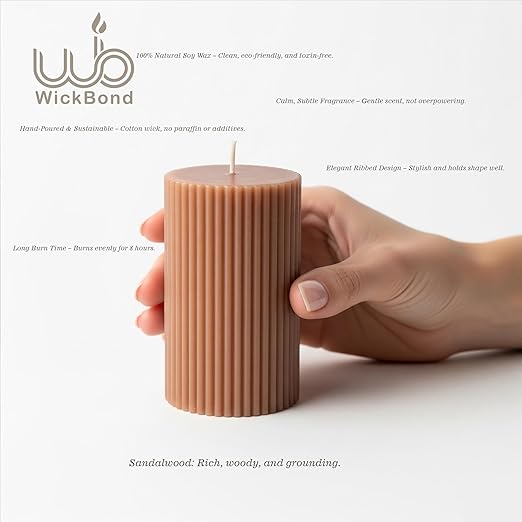 Samy Candle Cove Soy Wax Ribbed Pillar Candle Set of 3 – 2x3 Scented Candles for Home Decor, Spa, Diwali, Wedding, Valentine & X-Mass (Sandalwood)